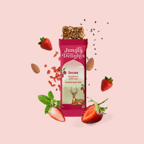 Jungly Delights Focus Strawberry with tulsi single bar 38g