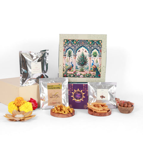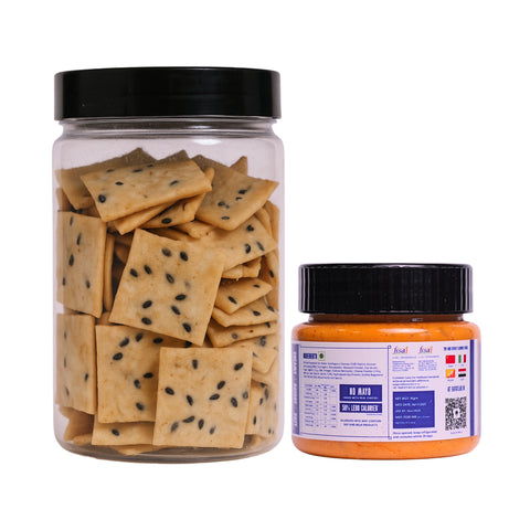 International Flavors in a cute Jute basket- Bhutan and Korea Dip (200 gms each) with Lavash Chips (85 gms)