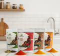 Experience the golden richness of our Pack of 4  Hand-Grounded Haldi Powder, Red Chilli, Coriander Powder & Sabzi Masala—crafted with care, purity, and tradition. Every spice begins with carefully selected, sun-dried ingredients, sourced at peak freshness to preserve their natural oils and authentic flavour.